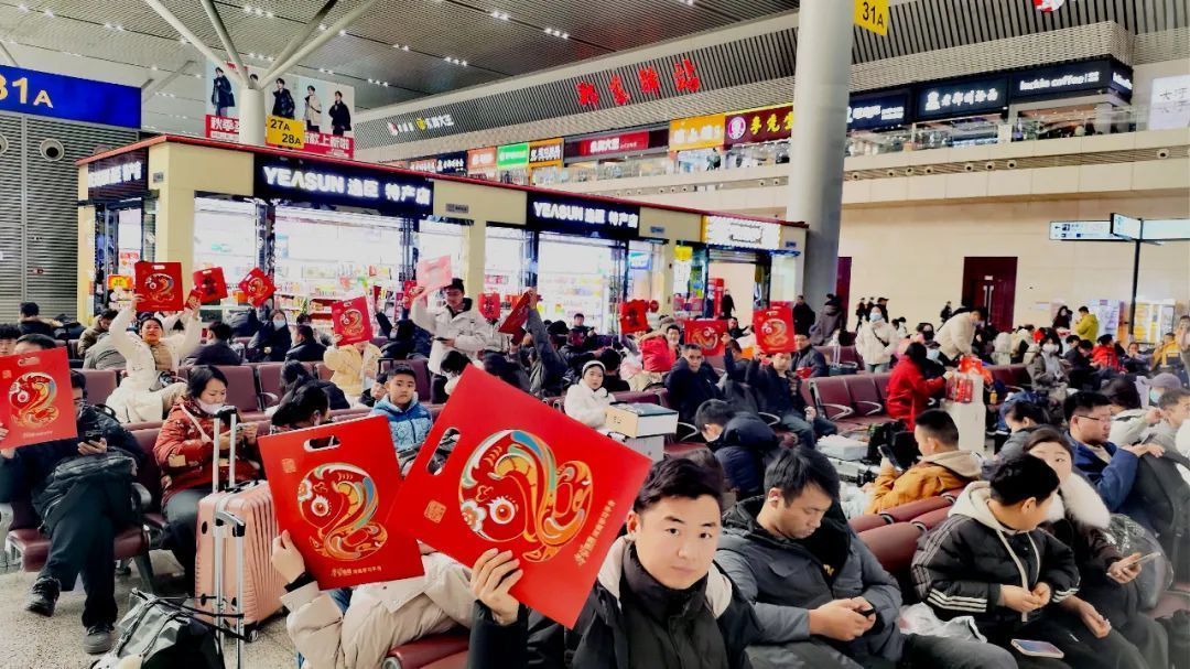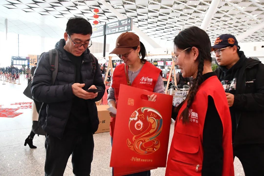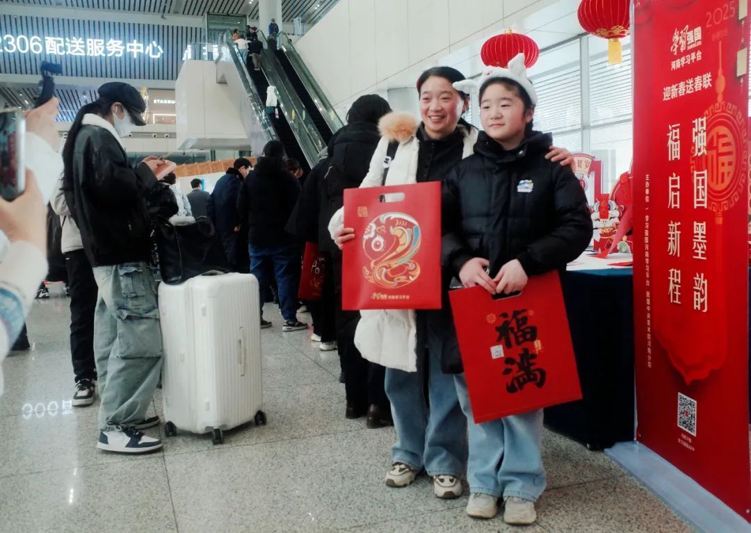 郑州东站的旅客收到了来自“学习强国”河南学习平台的新春大礼包