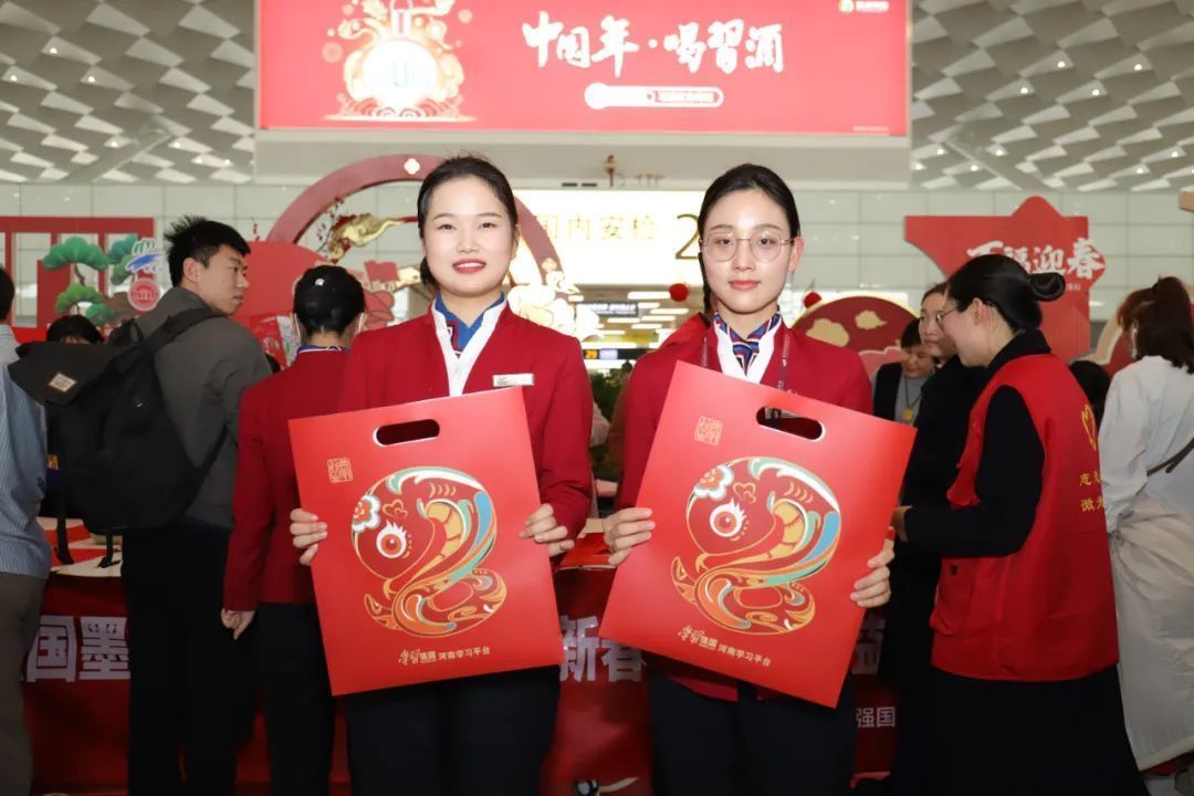 活动中,“学习强国”河南学习平台还免费向广大旅客派发了1000余份“学习强国”新春大礼包。大礼包中印制的春联和“福”字由省内书法名家创作,在乙巳新年到来之际,向公众传递了河南文化的美好与祝福。同时,不少外国友人也在现场领到了春联,他们表示,要把春联贴到国外去,将春节文化传播到世界各地。(记者王岗飞张新行 “学习强国”河南学习平台记者白芸)
